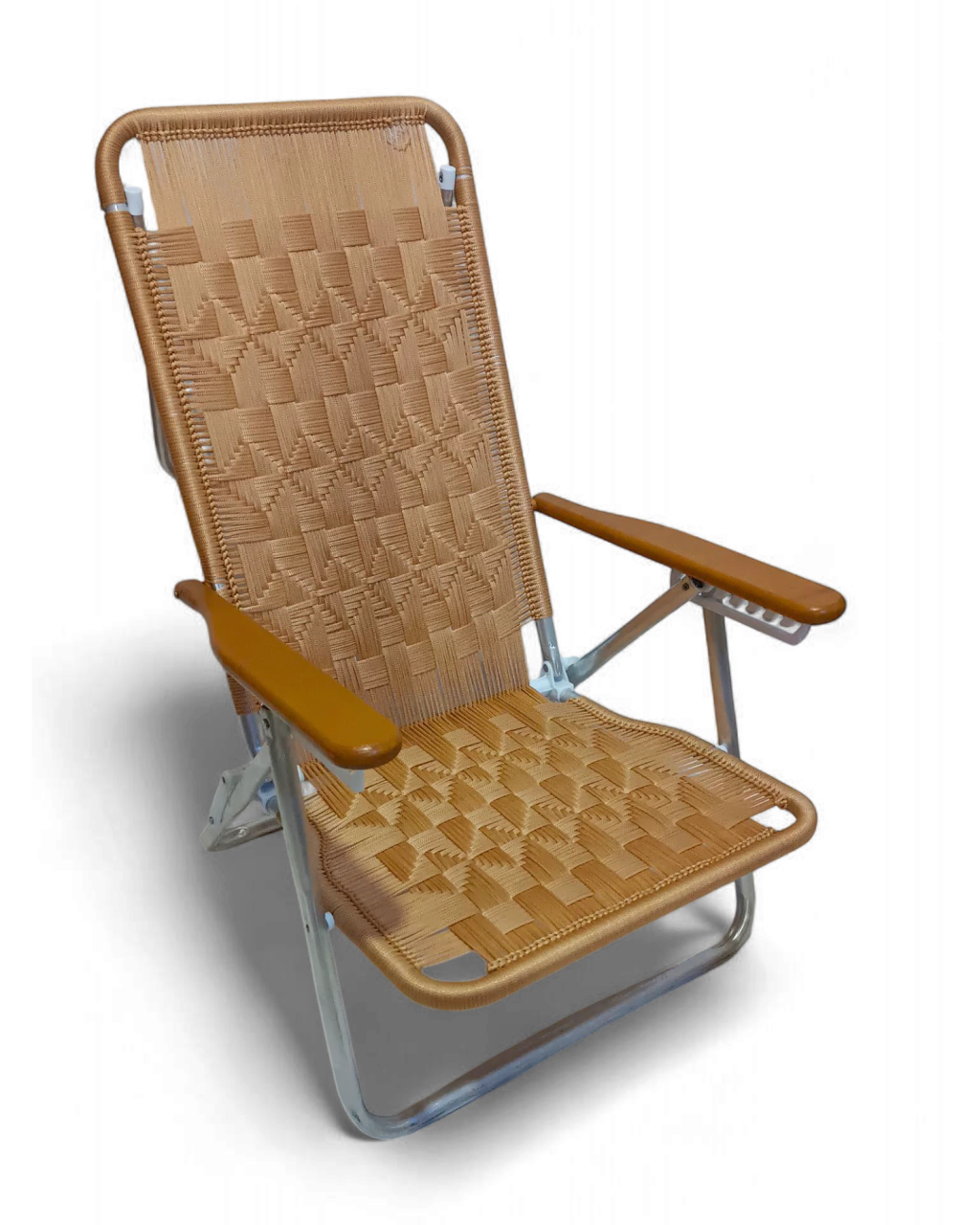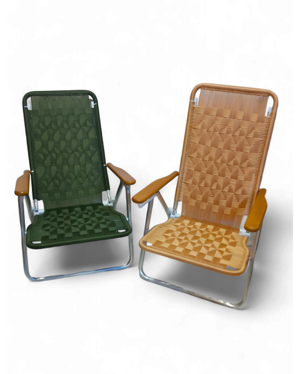 Os braços em madeira natural oferecem um toque acolhedor e artesanal, reforçando o compromisso da Bacutias com o design afetivo e a durabilidade. O encosto ajustável com 8 posições proporciona liberdade para relaxar do seu jeito – seja na varanda, praia ou jardim.